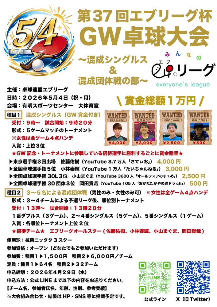 第37回エブリーグ杯GW卓球大会